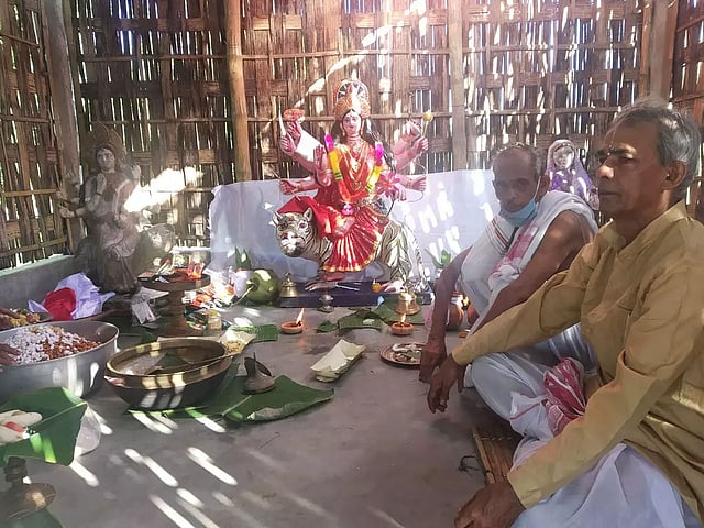 LAKHIMPUR: The erosion-affected idol of Goddess Durga who has been worshipped as Shri Shri Burhi Aai, was re-established at a new place under Khaga of Lakhimpur district in a programme organized in a sacred environment on the occasion of Maha Navami.