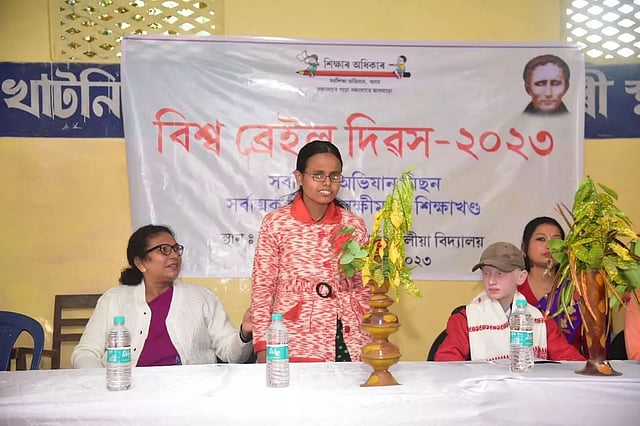 The agenda of the event began with the unfurling of the North Lakhimpur Town MV School flag by Headmaster Jitumoni Dutta. Then rich tribute was paid to Louis Braille by lighting earthen lamps in front of his portrait and garlanding the same. It was followed by a competition event among the teachers in connection with teaching-learning materials. The competition was inaugurated by ADC-District Mission Coordinator Geetalee Duworah. Then DEEO Hem Kanta Saikia performed the ceremonial formalities of the Luis Braille' birthday celebration.