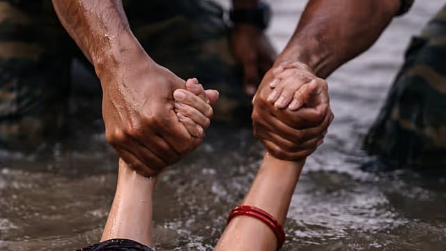 AZARA: The Indian Army saved a young woman from drowning in the river Brahmaputra near the Saraighat bridge on Wednesday afternoon. The incident occurred when soldiers of the 236 Inland Water Transport Operating Unit Engineers, deployed on routine duty, heard distress calls from beneath the bridge. The personnel were operating marine crafts anchored near Sadilapur Ghat at the time. Responding immediately, the Army team deployed a safety boat from Sadilapur Ghat and conducted a prompt rescue operation in the fast-flowing river. The woman was safely pulled out of the water and administered first aid onboard the boat. The rescued woman was later identified as Barakha Das (21 years), a resident of Ulubari in Guwahati. After ensuring her condition was stable, she was handed over to the local authorities at Pandu police station. The rescue operation was carried out by Nb Sub Ali Mohammad, Nk (L) Rajender Singh, Hav Subhash Chandra, and Hav Magan Singh.