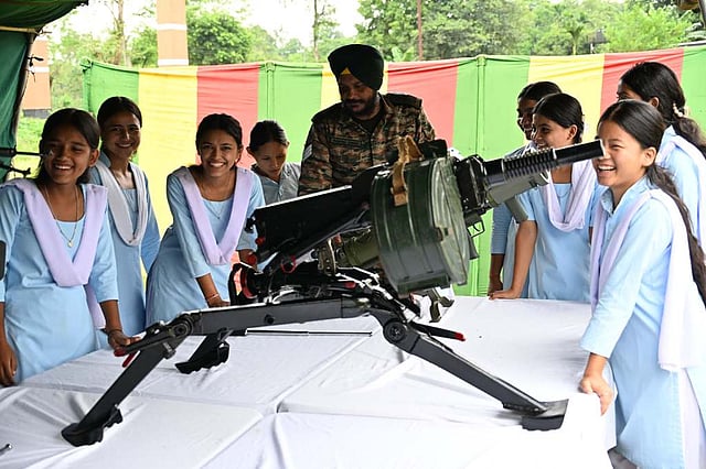 The event at Burhidihing School brought together 350 students and 10 teachers in a spectacular display of India’s military might.