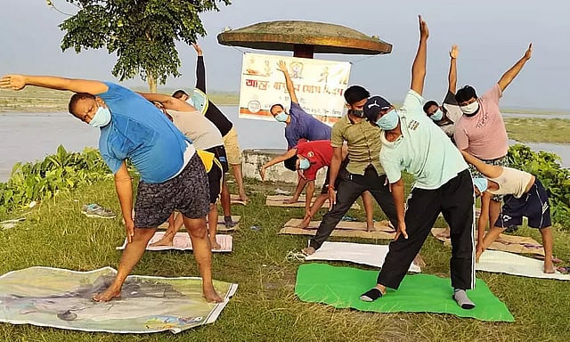 PATHSALA: Along with the rest of the world, the 7th International Yoga Day was observed in Pathsala by the BJP Bajali district committee in the party office. A yoga session was organized in the morning where different asanas of yoga were demonstrated by the invited yoga instructor. The party workers participated in the programme by wearing masks and maintaining social distancing. Yoga trainer Smita Parashar said, "This is a tough time for people across the world due to the COVID-19 pandemic. Yoga is a great tool to help improve respiratory health and immunity."
