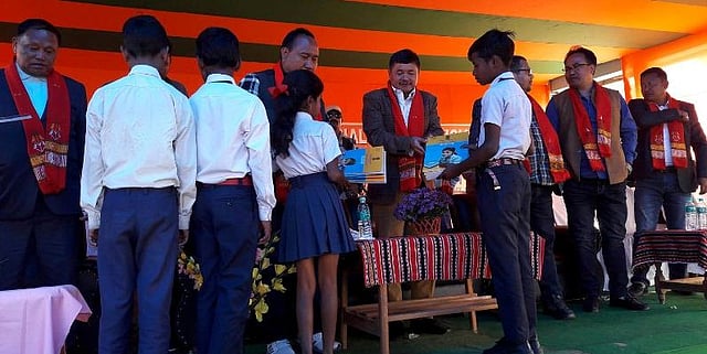 In the public meeting on Wednesday at the Satgaon field, 200 poor families received two bundles of GCI sheets and few threads and LP students were given exercise books. In the meeting, over a dozen Congress family members joined the BJP, led by Sonjit Marak, secretary of Rongkhang MCC.