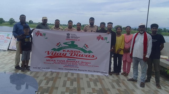 MORIGAON: Kargil Vijay Diwas was observed with great enthusiasm and patriotic spirit at Charon Beel on Saturday. The event was organized by Mera Yuva Bharat, Morigaon—an autonomous body under the Ministry of Youth Affairs and Sports, Government of India—in collaboration with NAHAR Youth Club.