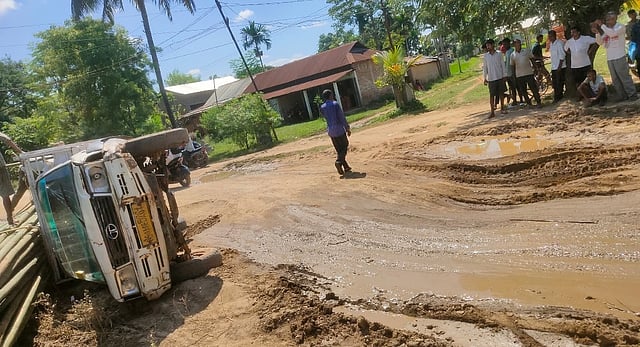 Located just three kilometers from the office of the Assistant Executive Engineer of the Public Works Department (PWD), Kheroni Sub-Division, this stretch serves as the only major route linking Donkamokam—the hometown of Karbi Anglong Autonomous Council (KAAC) Chief Executive Member Tuliram Ronghang, who also holds charge of PWD, KAAC—with the rest of the district.
