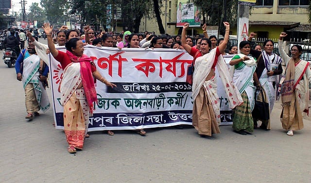 The association submitted a memorandum regarding their demands to the State Social Welfare Department through the Lakhimpur DC. The Anganwadi workers and assistants under eight mandals of the district, except Telahi Mandal, took part in the protest programme.