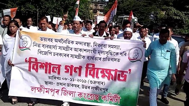 Led by LDCC president Dr Joy Prakash Das, hundreds of Congress activists took out a protest rally from the Rajiv Bhawan regarding the mentioned issues covering the North Lakhimpur town. Then they demonstrated near the District Post Office on the NH-15. The protesters shook the environment of the town by shouting multiple anti-government slogans.