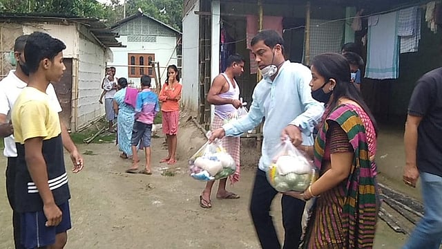 PATHSALA: Mridul Talukdar, president of Bajali Zila Samiti of AJYCP, his wife Nibedita Talukdar, father-in-law Mukunda Talukdar and family members have distributed food items to 157 families till date.