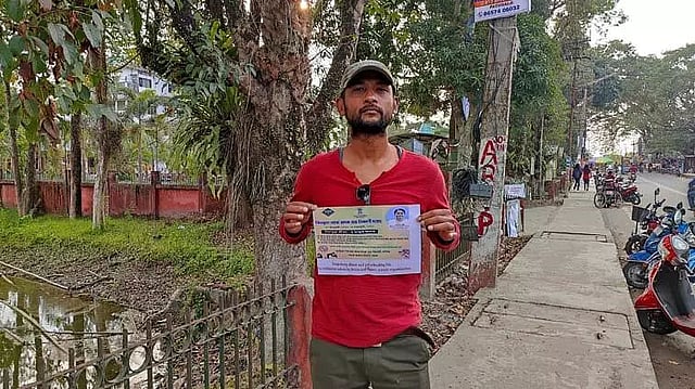 PATHSALA: At a time, when the Social Welfare department of Assam has initiated a fight against drug abuse, Khanin Roy stood for two hours holding a placard to create awareness among the students and public in front of Bhattadev University at Pathsala.