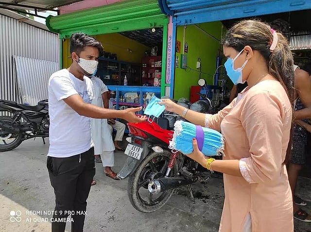 During the awareness programme within Kajalgaon Municipal Board, ADC Nirmali Baruah and Assistant Commissioner Rakhisri Lekharu were involved with the staff of DDMA, DIPRO, police and volunteers in generating awareness and distributing masks by visiting door-to-door of the individual houses and shops.