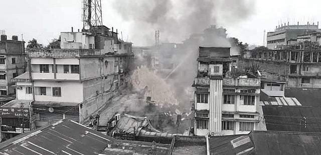 Dibrugarh: An inferno that broke out in the New Market area of the town in the early hours of Sunday, gutted one of the oldest cloth stores of Dibrugarh - Jagdish Cloth Store.