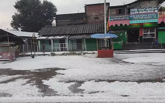 Pictures of roads covered in white after the hailstorm lashed parts of the Dibrugarh district have gone viral on social media. The temperature dropped even further, with the Indian Meteorological Department forecasting more rain in north-eastern states. "For the first time, we have witnessed such massive hailstorm in Moran. Small children were seen collecting hail and enjoying on the streets of Moran," said Amit Dey, a resident of Moran.