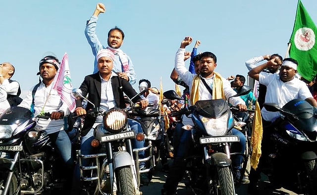 The rally flagged off from Sadiya along with a coordinated response from other places of the state like Diphu, Jonai and Dhubri at the same time on Sunday. As per schedule, the rally has started on Sunday morning with at least one thousand motorcycles and other vehicles and is to reach Guwahati on November 16. The rally is further to gherao the Janata Bhavan.