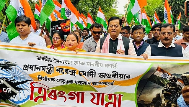 The march, also joined by Dibrugarh Mayor Dr. Saikat Patra, Deputy Mayor Ujjal Phukan, and BJP District President Dulal Bora, among others, was organized by the Bharatiya Janata Party to express gratitude for the sacrifices and dedication of Indian soldiers that led to the resounding success of Operation Sindoor.