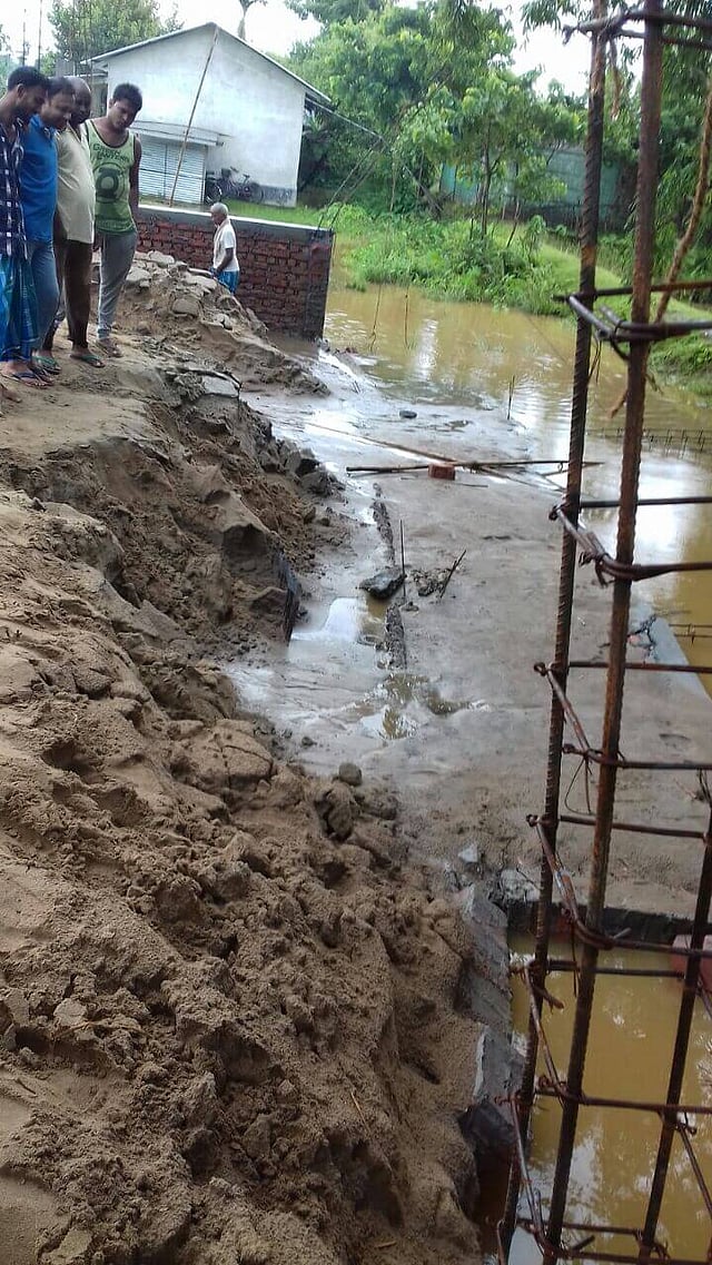 LAKHIMPUR: Strong reaction prevailed among the people of Nowboicha Legislative Assembly Constituency (LAC) when the wall of an open stage being constructed collapsed following heavy rain on Sunday. The open stage is being constructed at Pabha Chariali High Madrassa playground for a month. Crack lines can be seen in the wall when it has not even been a month since the construction of the wall.