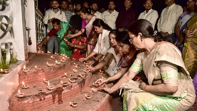 NAGAON: Nagaon District Bharatiya Janata Yuva Morcha in association with District Bharatiya Janata Party paid tributes to the people who were killed in a car bomb blast outside the Red Fort in Delhi on Monday. The tribute programme was held at Nagaon Clock Tower on Tuesday evening where 101 earthen lamps were lit for the peaceful repose of the souls of those killed and the speedy recovery of the injured.