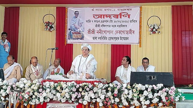 SIVASAGAR: Emphasizing the spiritual and social significance of religion, Xatradhikar Nanigopal Dev Goswami of Dakshinpat Xatra said that religion was essentially a means that strengthened the bond between human beings and God and helped build harmony in society. He made this remark while inaugurating a newly-constructed modern auditorium at Old Amolapatty Namghar in Sivasagar town on Friday.