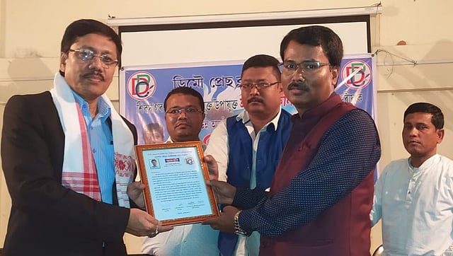 DEMOW: Under the patronage of Demow Press Club, a felicitation programme was organized for Lakhinandan Gogoi, New Deputy Commissioner of Sivasagar district in Demow Multi-Purpose on Saturday. In the felicitation programme, Ajay Kumar Gogoi, secretary of Demow Press Club, gave the welcome speech and Shekhar Jyoti Dowari, assistant secretary of Demow Press Club anchored the felicitation programme. The members of Demow Press Club felicitated Lakhinandan Gogoi with a gamosa and a certificate. The local organizations of Demow and senior citizens also felicitated Lakhinandan Gogoi. In his speech, Gogoi thanked the Demow Press Club and greeted local organizations and government employees of Demow. He talked about the experience of working in Demow earlier and he also said in his service career, he had a good experience working in Demow.