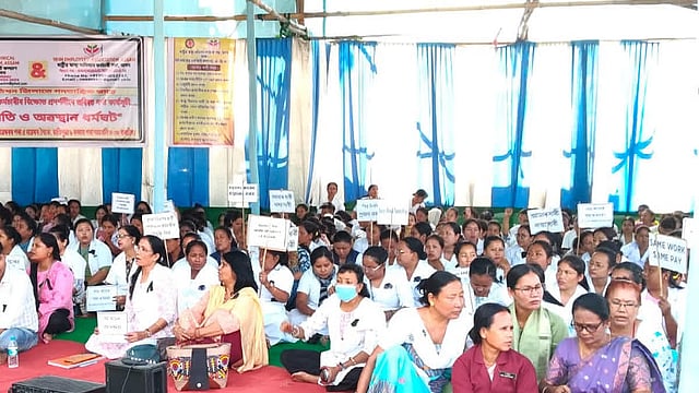 MORIGAON: The employees of National Health Mission (NHM), Morigaon, came down heavily on the State Government demanding implementation of 'Equal Work and Equal Pay' rules for the employees immediately. They staged a three-day work boycott programme and submitted a memorandum to the Chief Minister through the MLA of Morigaon. Altogether 600 employees of NHM staged the protest demanding job security. The protest commenced from November 3 and concluded on November 5 in the premises of the Jt Director of Health Office.