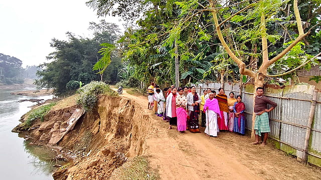 PALASBARI: Residents of No. 1 Balasiddhi Balapara under the newly-reorganized Palasbari constituency in South Kamrup staged a strong protest on Tuesday, demanding immediate measures to prevent erosion by the Kalahi river and the construction of a permanent road in the area.