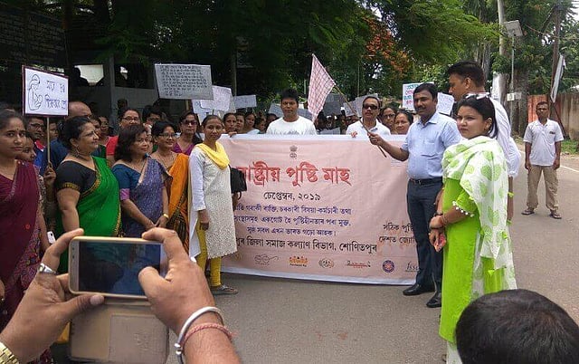 Around 1,000 people gathered, including students of Dakuapara Prathamik Vidyalaya, to take the pledge. It was followed by teaching children about hand washing steps and plantation of saplings within the school campus. Child Development Project Officer (CDPO) of Boko and Bangaon, Rubul Sarma flagged off the rally in the presence of bodybuilder Golap Rabha. The main attraction in the rally was a domestic elephant decorated with instructions of how to meet the nutritional need of the body.