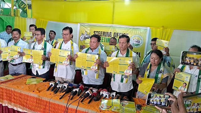 KOKRAJHAR: United People's Party Liberal (UPPL) President Pramod Boro along with Minister and party founder UG Brahma, MP Joyanta Basumatary and senior party leaders released the UPPL manifesto, guarantee card, and stick card at Central Election Steering office, Bhabanipur in Kokrajhar on Sunday. The manifesto includes special emphasis on equal growth and development of 26 communities of BTC.