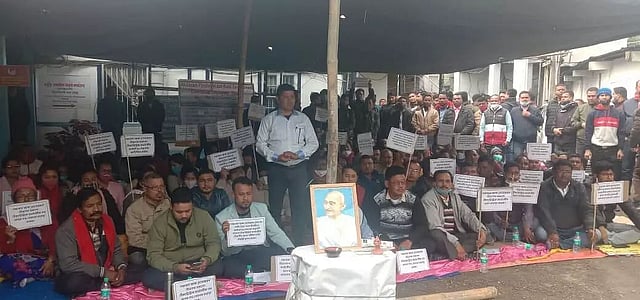 In this connection, they staged a three-hour long sit-in in front of the Lakhimpur Zila Parishad Office. The protest programme was organized under the auspices of Lakhimpur district unit of Contractual Employees' Union of Panchayat and Rural Development (P&RD) Department.