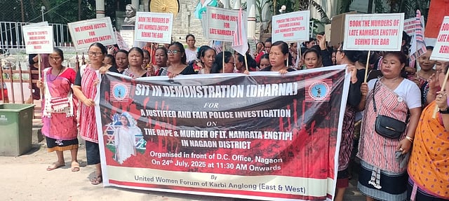 NAGAON: Women from various parts of Karbi Anglong district gathered on Thursday at Nagaon to protest and demand justice for the murder of Namrata Engtipi. The protesters, led by the United Forum of Women of Karbi Anglong, held a silent march from the Clock Tower to the District Commissioner’s office.