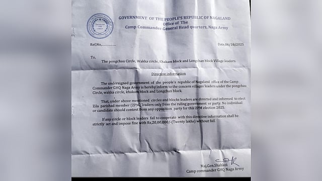 Intelligence agencies have reportedly got hold of a document in which the outfit has issued a 'directive' to the villagers under Wakka, Pongchau, Khakam, and Longchan circles in Longding district of Arunachal Pradesh not to field candidates from any other party other than 'the ruling government and party.'