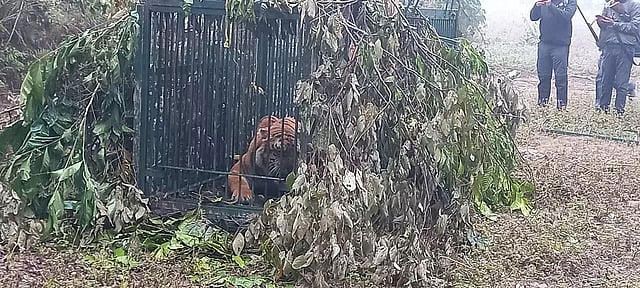 TEZPUR: Thirty-one days into its intensive search operation, the Sonitpur West Forest Division along with the staff of Orang National Park tranquilized and captured a Royal Bengal Tiger at Barbhagia village, Borsola area under Dhekiajuli Range in Sonitpur district on Tuesday, which strayed away from the Orang National Park in search of food.