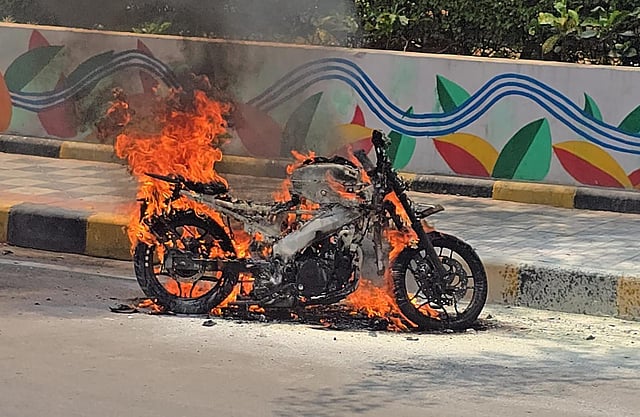 The rider who reportedly sustained minor burn injuries is stated to be in a stable condition. The cause of the fire is yet to be ascertained.