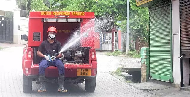 DEMOW: The administration closed down all shops in Demow at 2 pm on Thursday in order to sanitize the town. After the shops were closed, sanitization was done under the initiative of Indica Gogoi, Executive Officer of Demow Town Committee, and Gautam Kalita, Junior Engineer of Demow Town Committee.