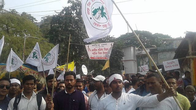 Guwahati: Dispur witnesses a huge rally today as a total of 70 indigenous organizations including the Krishak Mukti Sangram Samiti (KMSS) stage a protest rally entitled Sankalp Yatra in the state capital today. The rally had kick-started on November 12 from various locations of Assam and was scheduled to be uniting in Guwahati on November 16.