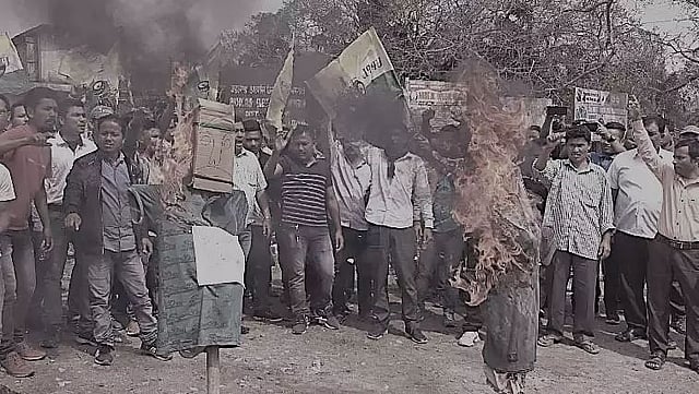 TANGLA: The pre-poll dynamics of Bharatiya Janata Party (BJP) and United People's Party Liberal (UPPL) with regard to seat sharing in the 12 Assembly seats of the four districts of the Bodo belt have not gone down well with the ticket aspirants and a section of party workers of UPPL in Udalguri district, who expressed resentment and staged protest against the BJP and burnt effigies of North-East Democratic Alliance (NEDA) convener Dr. Himanta Biswa Sarma; BJP national general secretary and Mangaldoi Lok Sabha MP, Dilip Saikia and Rajya Sabha MP-cum-BJP candidate of Paneri LAC, Biswajit Daimari at Bhergaon in Udalguri district on Saturday.