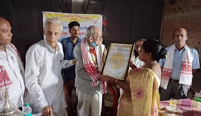 LAKHIMPUR: Batoti Butala Moina Parijat, Batori Butala Parijat Sangha and Salal Gaon Krira Santha of Lakhimpur district gave warm felicitations to 'Shishu-Bandhu' Prahlad Phukan on Sunday. Notably, the Sodou Asom Moina Parijat recently honoured Prahlad Phukan, the relentless child worker, retired teacher, social cum cultural activist, sport organizer, by conferring Shishu Bandhu title for 2019. He is the first and foremost winner of the prestigious title from the district.