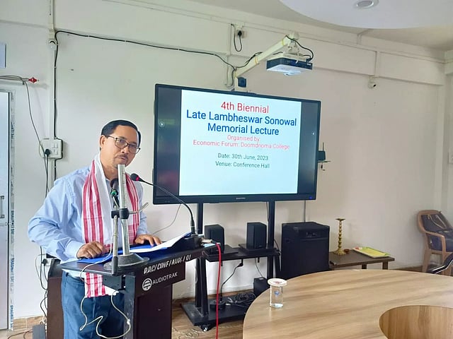 DOOMDOOMA: “Speed and high sense of professionalism characterize modern day mass media.” This was stated by Lohit Chandra Deka, programme head, All India Radio (AIR) and Doordarshan (DD), Dibrugarh while delivering his speech as appointed speaker of 4th biennial conference of late Lambeswar Sonowal Memorial Lecture on “Role of Mass Media in the Process of overall development” organised by Economic forum, Doomdooma College on Friday.