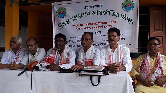 The Srimanta Sankardeva International Mission organized a press meet at Rakhal Naamghar, Udalguri where Dr. Dimbeswar Bharali, the president, Pramod Rajbongshi, general secretary, Ajit Kumar Dewan, the acting president, and Devaraj Sapkota, the vice-president of Srimanta Sankardeva International University were present.