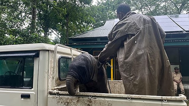 According to Dr Sonali Ghosh, Field Director of Kaziranga National Park and Tiger Reserve, the forest patrol team was alerted by local residents at Borjuri Basti in Bokakhat at around 4 am on Saturday. Villagers informed them that a calf had been left behind while the elephant herd was making its way back into the park via the Veroni corridor.