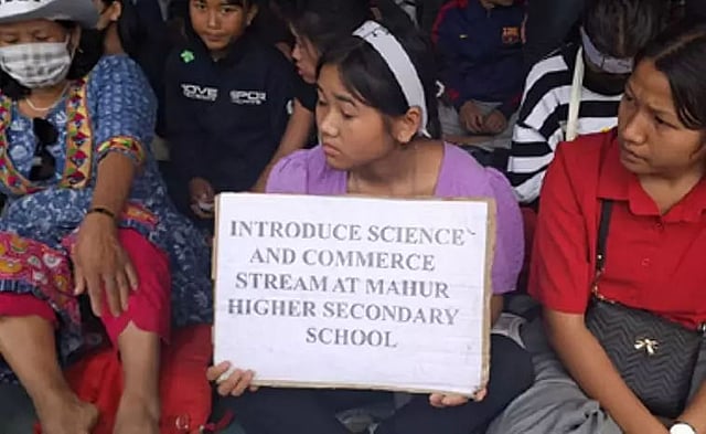 HAFLONG: To demand the introduction of a multi-stream facility in the Mahur Higher Secondary School; establishment of a degree college in Mahur; provincialization of all adhoc High Schools under NC Autonomous Council; and immediate approval of all the High Schools submitted for upgradation into Higher Secondary at Mahur in Dima Hasao, the NC Hills Indigenous Students’ Forum and Indigenous Women Forum staged a sit-in with placards at Mahur on Tuesday.