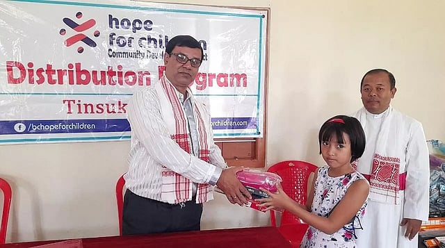 DOOMDOOMA: After a long period of lockdown due to COVID-19 pandemic, the educational institutions in the State of late have started their regular offline classes by following the Standard Operating Procedure (SOP) laid down by the State Health Department. In order to encourage the students from the marginalized section of the society so that they won't drop out from school, NGO "Hope For Children" distributed some stationery items like pens, pencils, scales, erasers, pencil boxes, water bottles etc. among one hundred students of different schools of Doomdooma region at a programme held at the office premises of the NGO situated at Sookerating No. 8 recently.