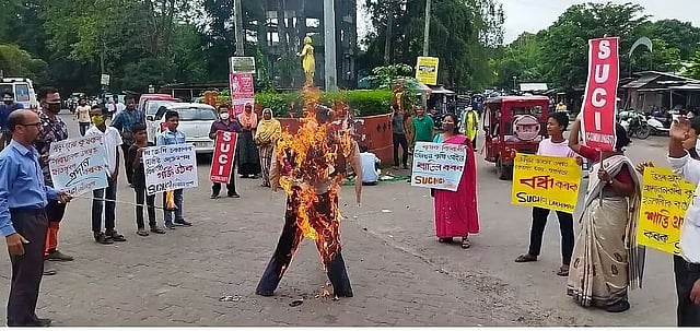 Condemning the 'heinous' incident, the activists of Socialist Unity Centre of India (Communist) and its brother-sister organizations organized a protest meeting in North Lakhimpur town in connection with the nationwide Protest Day observed in regarding the issue. Further, the protesters burnt the effigy of MoS Ajay Mishra Teni in the town. By staging the protest, the political party activists demanded exemplary punishment to Ashish Mishra Teni and other accused persons and compensation to the deceased and injured.