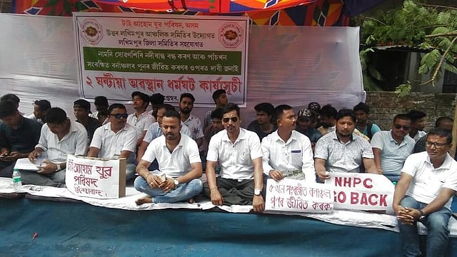 LAKHIMPUR: The Tai Ahom Yuva Parishad, Asom (TAYPA) staged a two-hour-long sit-in in North Lakhimpur town demanding stop on transportation of SLHP (Subansiri Lower Hydro Electric Project) materials immediately. In the protest program, which was initiated under the aegis of the North Lakhimpur regional unit of the organization in assistance with the district committee, TAYPA regional president Bipul Tamuli Phukan and general secretary Bikash Gogoi came down heavily against the issue. The organization also submitted a memorandum to the Governor, demanding him to take steps to stop the controversial big river dam.