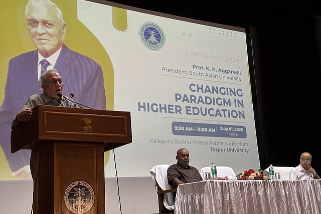TEZPUR: As part of its distinguished lecture series, Tezpur University organized an insightful lecture on “Changing Paradigm in Higher Education” at the KBR Auditorium. The lecture was delivered by Prof KK Aggarwal, former Chairman of the National Board of Accreditation, founding Vice-Chancellor of Guru Gobind Singh Indraprastha University, New Delhi, and current President of South Asian University. The event began with a welcome address by Prof Shambhu Nath Singh, Vice-Chancellor of the University. Speaking on the occasion, the Vice-Chancellor remarked that the landscape of higher education is undergoing a profound transformation. He noted that institutions are increasingly challenged to equip students not just with theoretical knowledge but also with critical 21st-century skills.