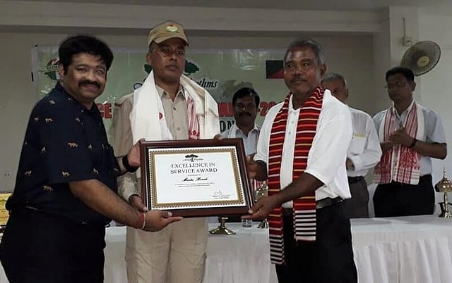 The Jungle Rhythms-Service Excellence Awards, 2019 were given away to three forest personnel - Dharanidhar Bora, retired Range Officer, Agaratoli Range, and two casual workers - Manik Ali and Mintu Bora of Kaziranga National Park - at the Convention Centre, Kohora. They were awarded for excellent work in the protection of rhino as well as flora and fauna at Kaziranga.