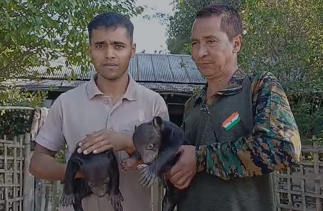 JORHAT: A resident of Morongial, Deberapar Nakachari area near the Assam-Nagaland border under the Mariani Range of Jorhat Forest division, found two black-colored bear cubs in the backyard of his house on Wednesday. According to a forest department source, Pabitra Gogoi had gone to the backyard of his house for some work when he heard some noise resembling the cry of an animal and found two black babies of an animal that seemed to be cubs of a bear.