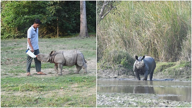 The male rhino calves had been separated from their mothers during devastating floods and were rescued from the Mihimukh and Kathori areas of Kohora. They were being reared at the Panbari Wildlife Rescue and Rehabilitation Centre.