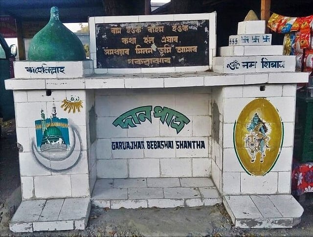 A unique donation box made by Garuajhar Bebashai Santha has become the talk of the town and has been spreading the message of secularism. The donation box has the imprints of Lord Shiva on one side reading Om Namah Shivay and a picture of Mecca reading Rahe-Lillah (donate in the name of god) on the other side.