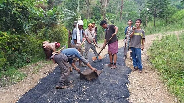 Luna Singson, who led the programme, said, "The NHAI has been constructing the East-West corridor just below the village following which the approach road to the village has been damaged. The villagers had approached the NHAI officials at Haflong long back but the NHAI authority has remained silent in this regard till date. This indifferent attitude of the NHAI and also the department concerned has compelled the villagers to take this step."