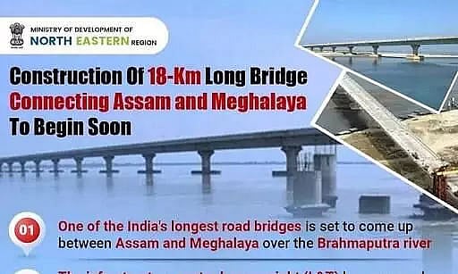 The bridge will be a four-lane bridge over the Brahmaputra river on the National Highway 127 B from Dhubri in Assam to Phulbari in Meghalaya.