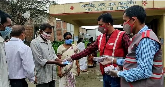 MANGALDAI: With the theme 'Together we are unstoppable' the Darrang District Branch of Indian Red Cross Society (IRCS), synchronizing with the worldwide celebration of World Red Cross Day, on Saturday celebrated the birthday of Nobel Peace Award recipient and the founder of the International Committee of the Red Cross (ICRC), Henry Dunant who was born on this day in 1828. To mark this day, the officials of Darrang district IRCS distributed masks, hand sanitizers and soaps to the cross section of the people in Mangaldai town and also organized an awareness campaign.