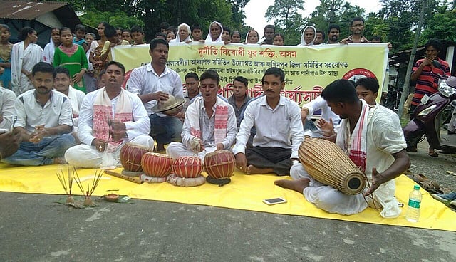 On the other hand, the people of greater Telahi-Kamalaboria area in the southern part of the district are deprived of getting regular medical services as doctor is not available at Panigaon Additional Hospital for 24 hours. Regarding these issues, the Anti Corruption Youth, Assam(ACYA), in association with the public, administered strong protest against the district administration and the State government by blocking the busy KB Road of the district at Bapokhat on Thursday. In the programme, which was initiated under the aegis of Telahi-Kamalaboria Regional unit, in association with Lakhimpur district body of the organization, the activists created a unique environment by presenting nam-kirtan with the blended notes of khol, nagara, bortal etc. Participating in the programme, Dharma Kanta Gogoi, the State president of the organization slammed the State government for allegedly failing to accelerate developmental activities and in resolving the burning problems of Lakhimpur district. He demanded immediate actions on the part of authorities concerned to mitigate the issues raised.